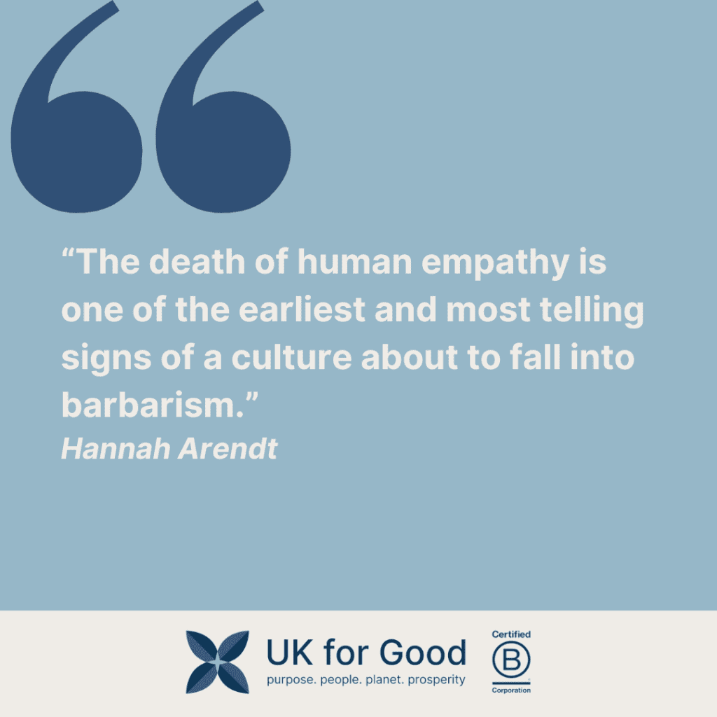 Two contrasting quotes caught my attention this morning: “The fundamental weakness of Western civilisation is empathy.”— Elon Musk “The death of human empathy is one of the earliest and most telling signs of a culture about to fall into barbarism.”— Hannah Arendt One views empathy as a flaw, a hindrance to progress. The other sees…